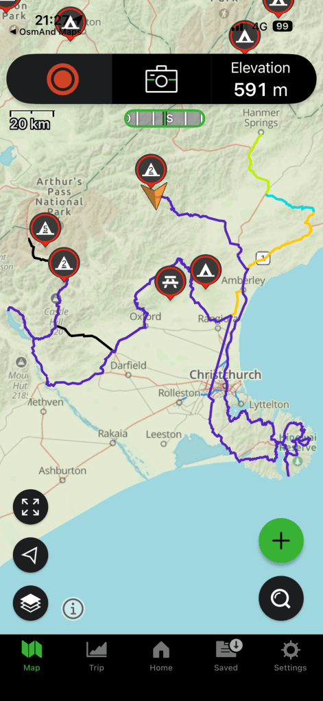 It started benignly enough, an early(ish) start from Hawden Shelter campsite just below Authurs Pass. I was heading for Loch Katrine campsite via Lees Valley and lots of other tracks on Josh Martin’s (Adventure Guide) Smoking Dragon “Adventure”